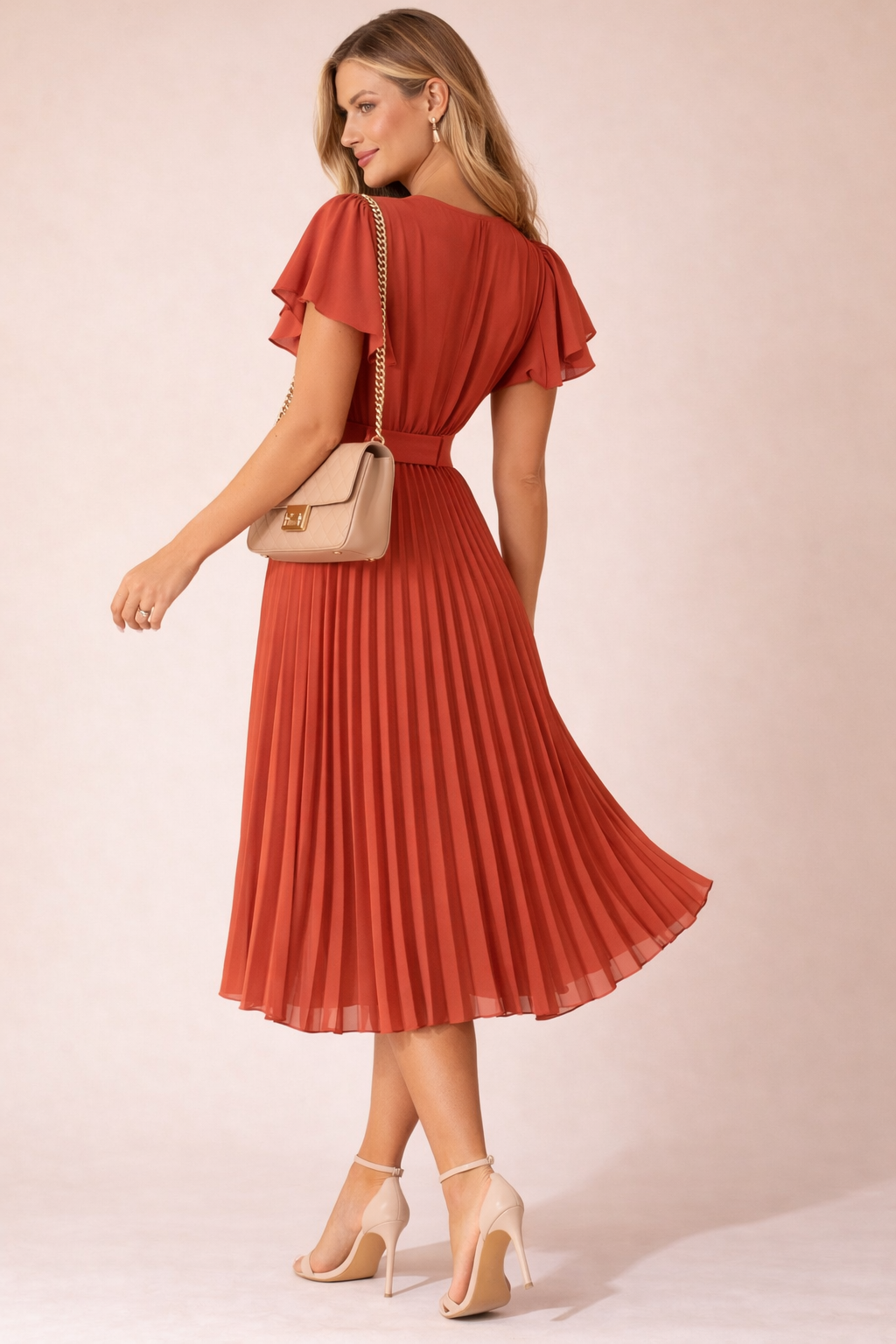 Une robe plissée chic dans une teinte terracotta lumineuse